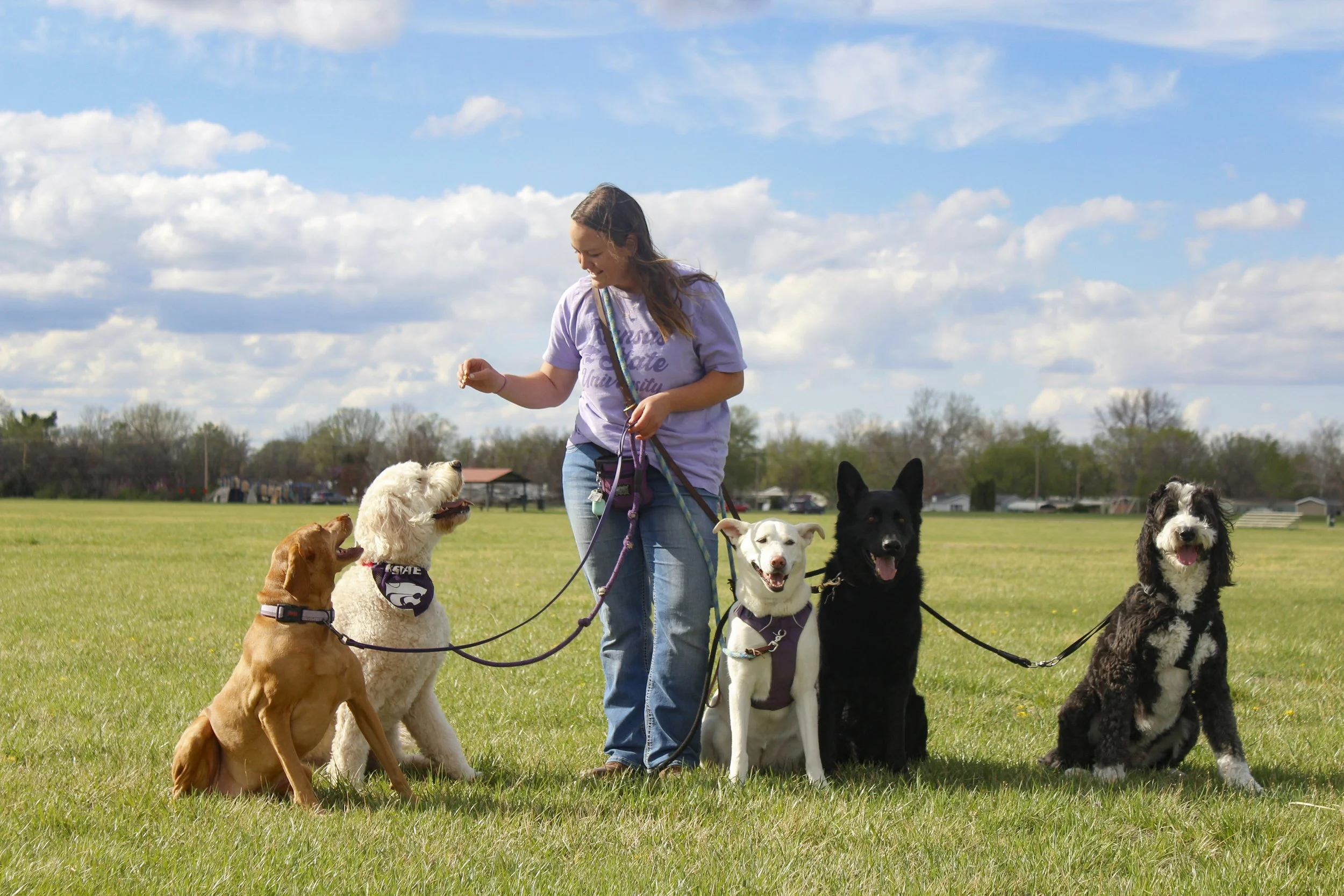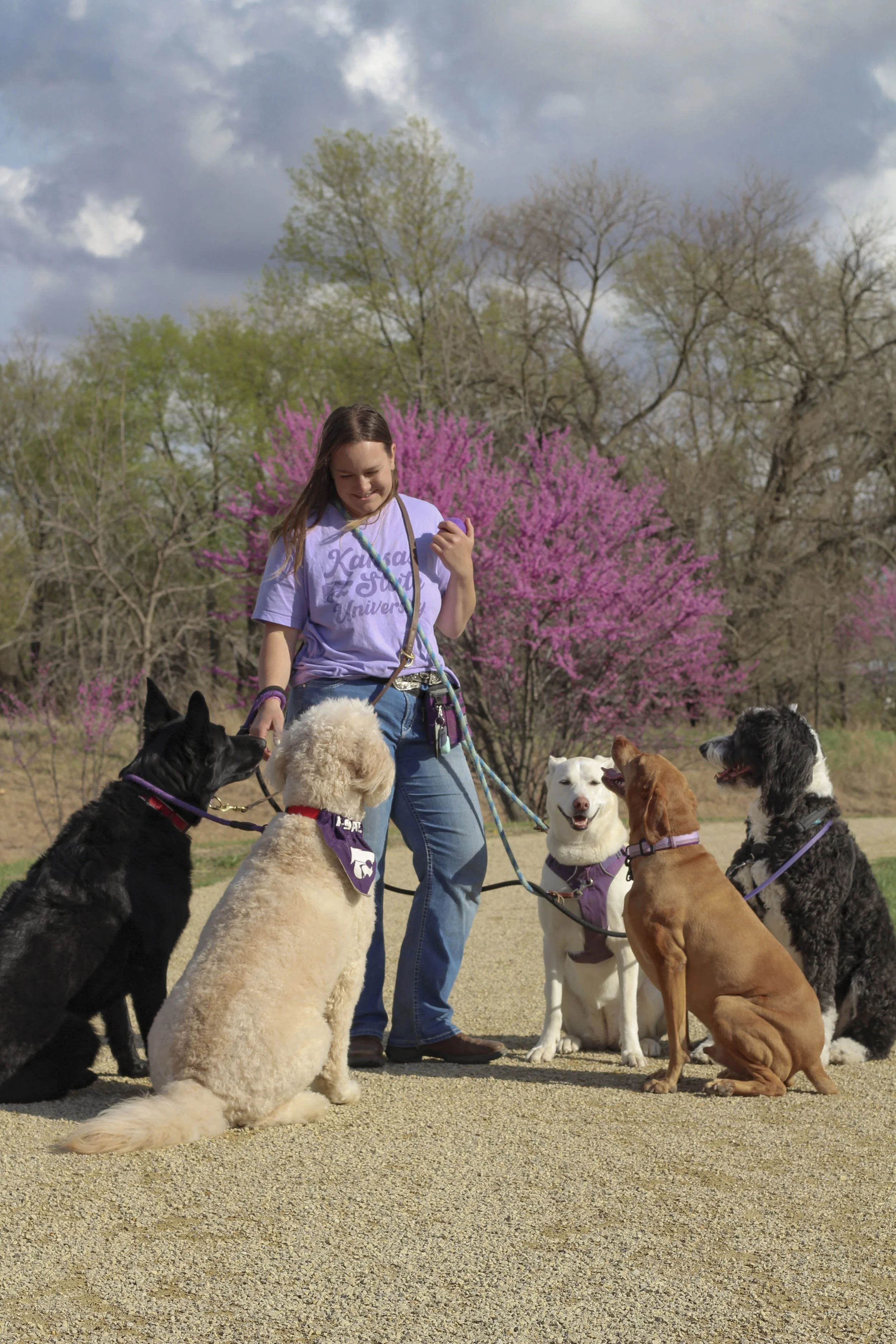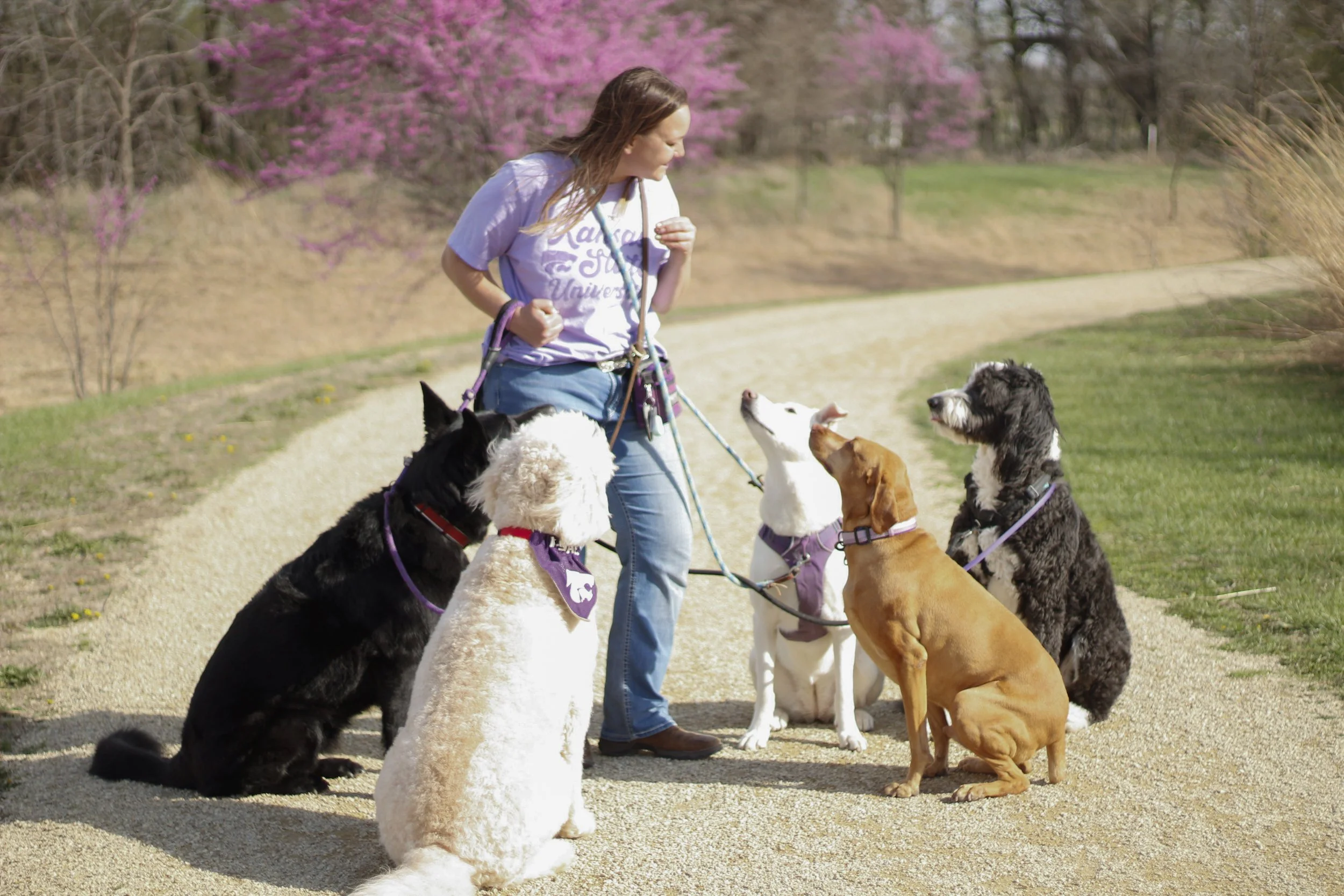 Carissa grew up on a beef cow-calf ranch and farm near rural Lincolnville, KS. She began her career with dogs early in high school when she trained the family farm dog, Max, as a therapy dog. She was able to escort him to school and nursing homes and wrote her senior thesis on the affects of therapy animals in nursing homes. Carissa moved to Manhattan, KS in 2016 to follow her animal science dreams and has been working with dogs in the area ever since. She graduated from Kansas State University with a Bachelor's of Science in Animal Science and holds a certification of Applied Animal Behavior through the University of Washington. Carissa’s favorite part about working with dogs is building a relationship with each dog and the clients.
